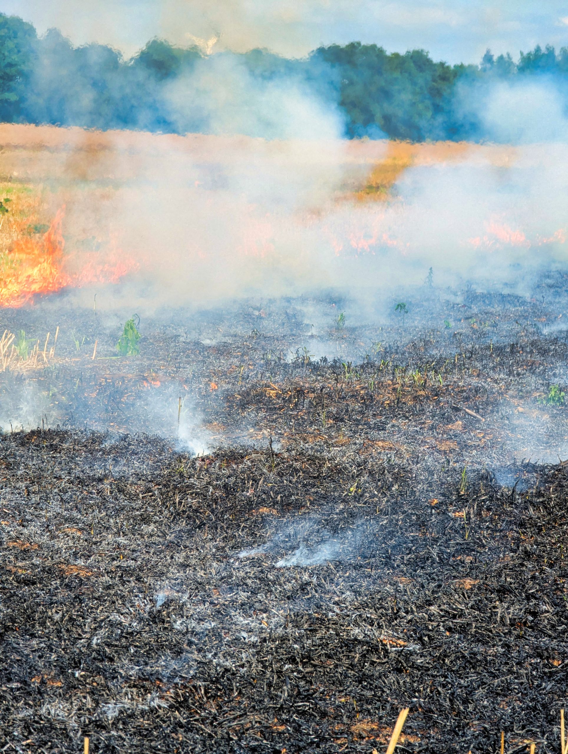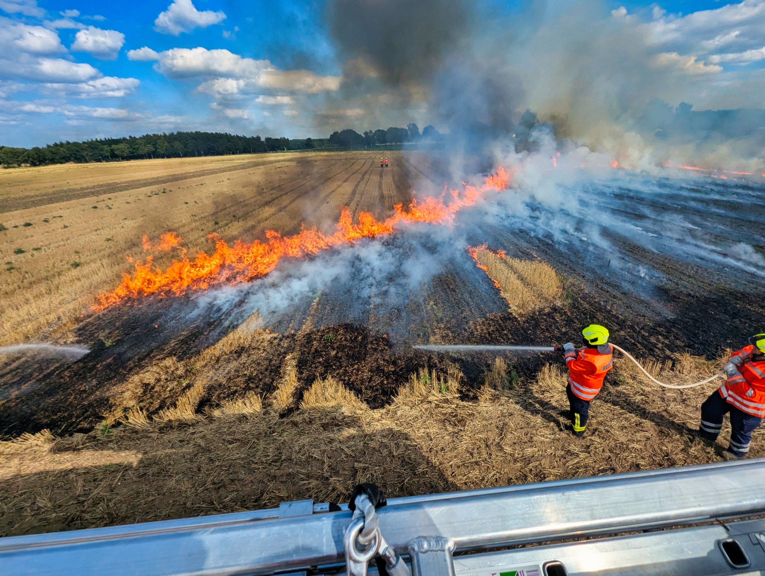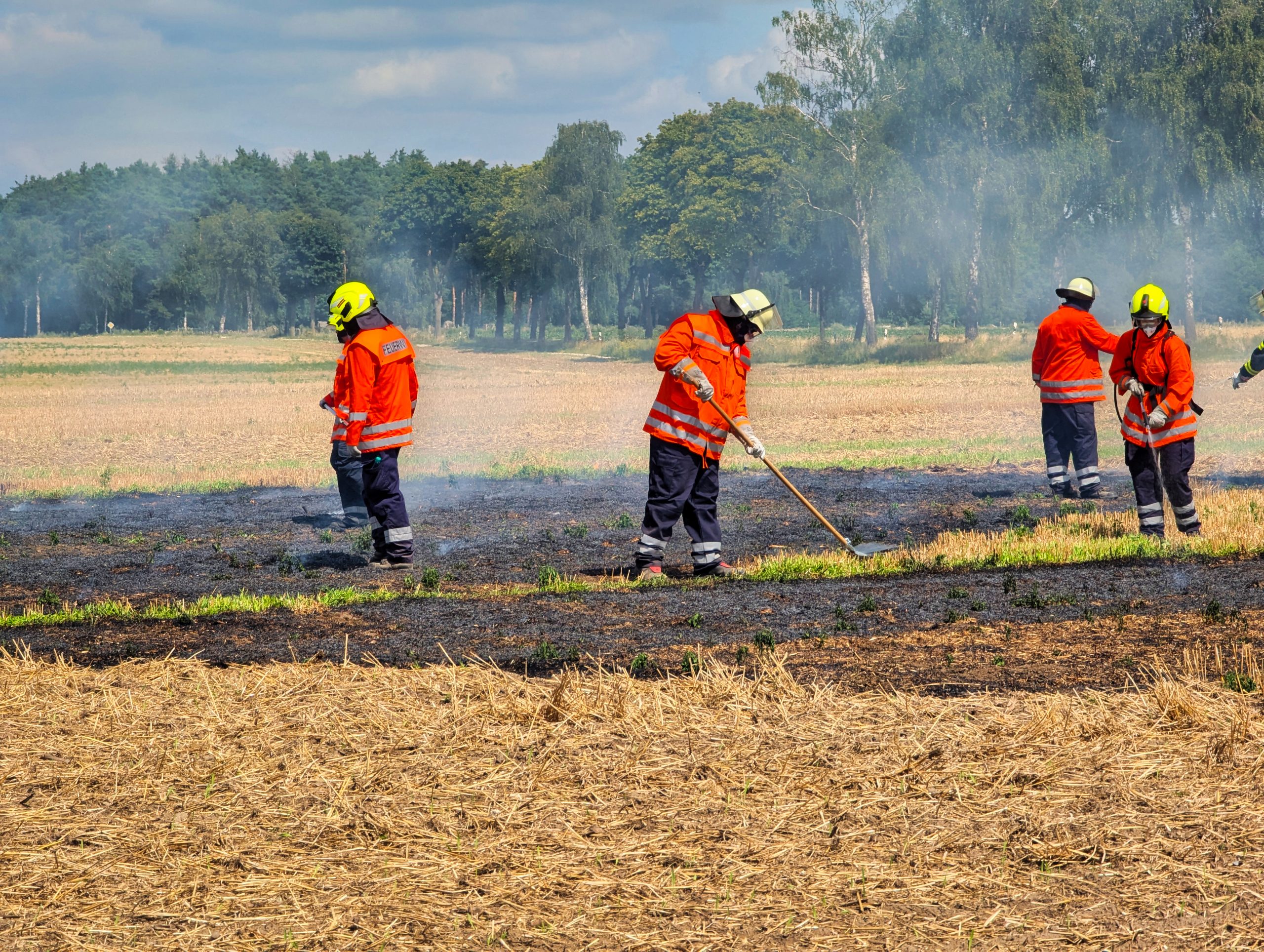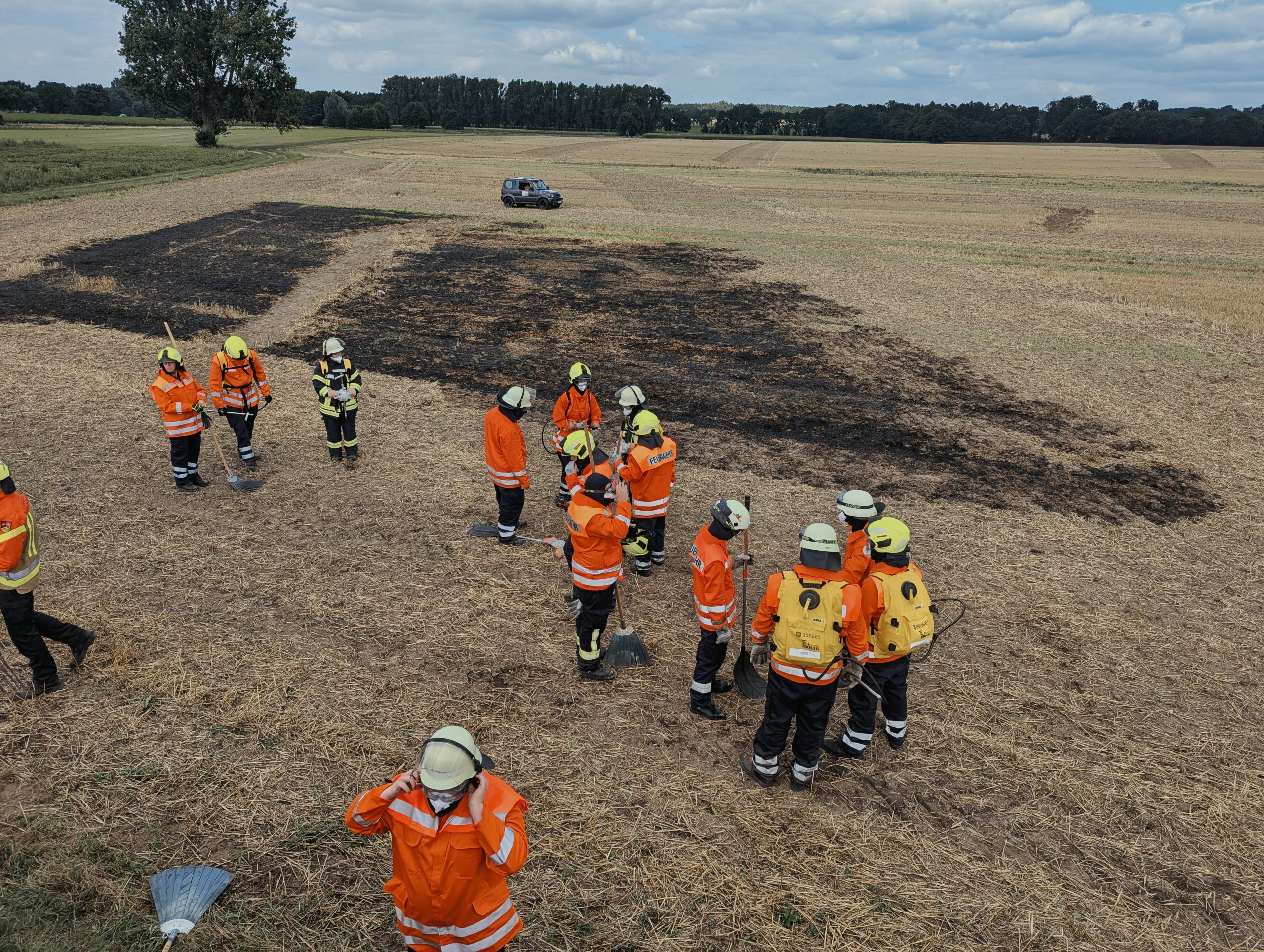 Im Verlauf des Nachmittags kamen dann auch die wasserführenden Fahrzeuge zum Einsatz. Dafür wurde eine größere Stoppelfeldfläche in Brand gesteckt und anschließend im Pump-and-Roll-Verfahren abgelöscht.
