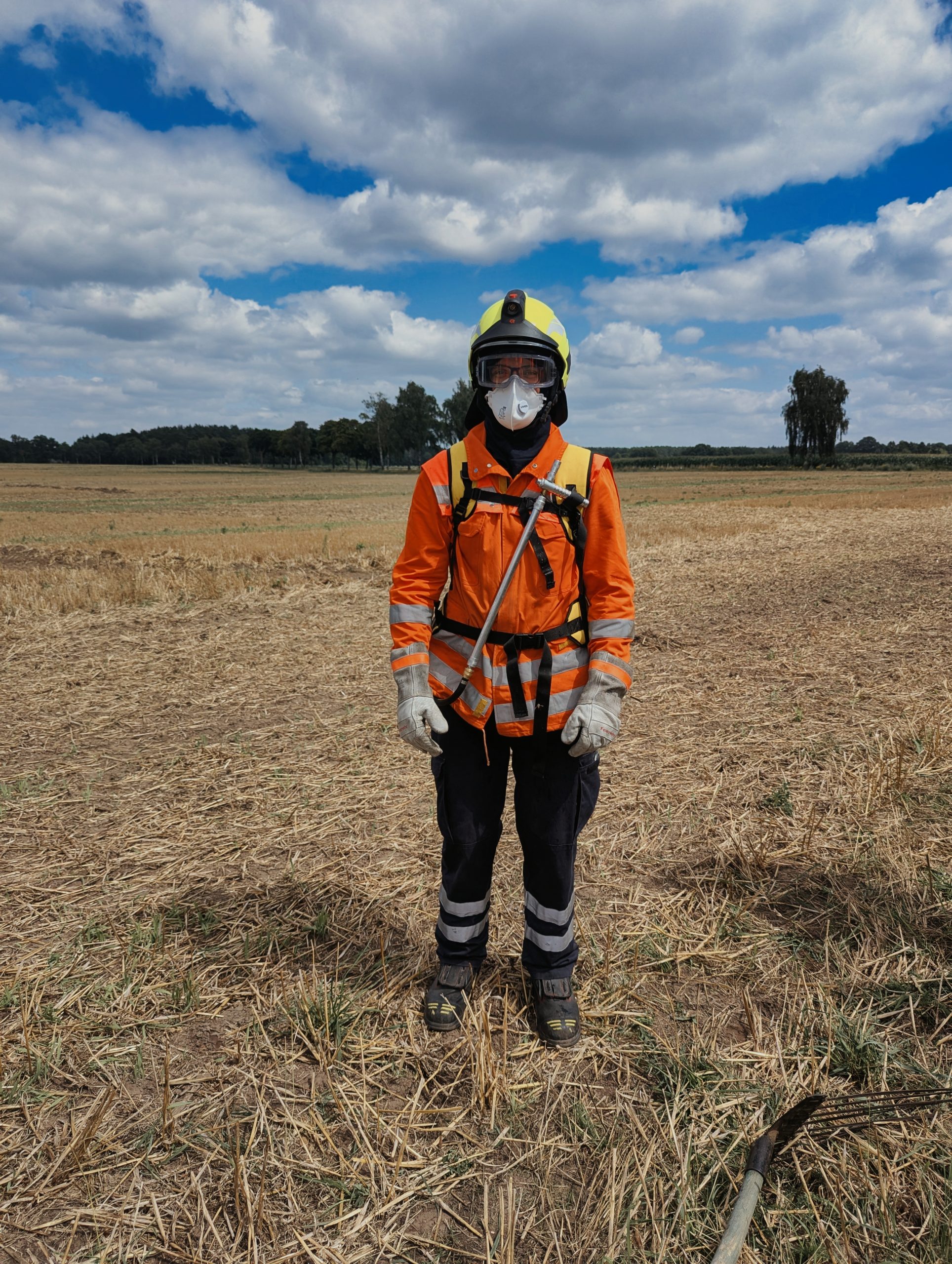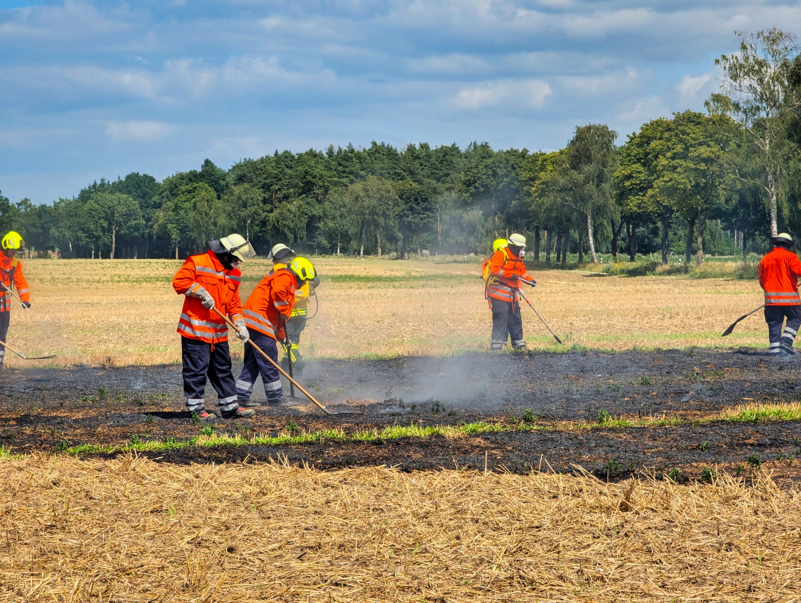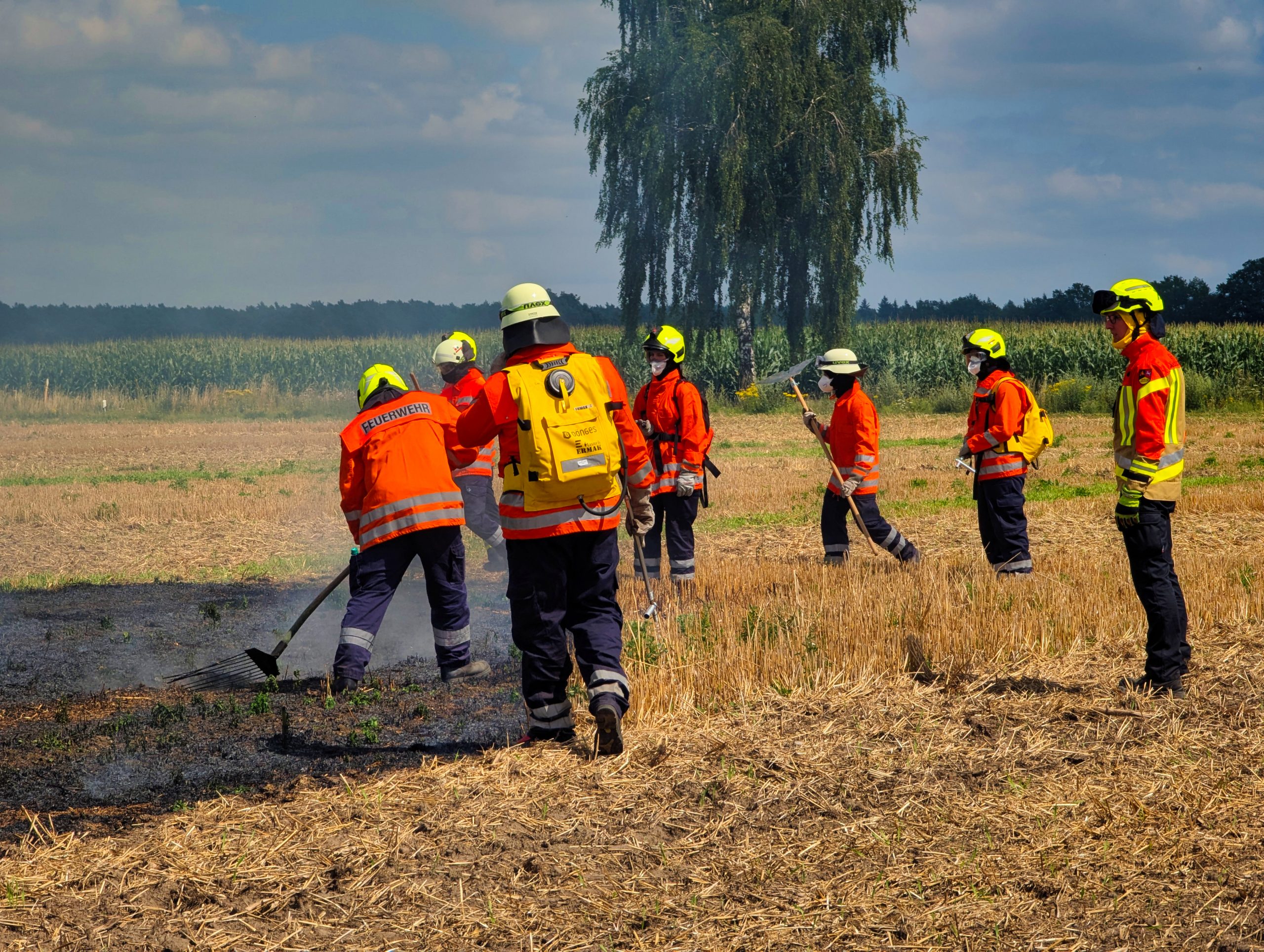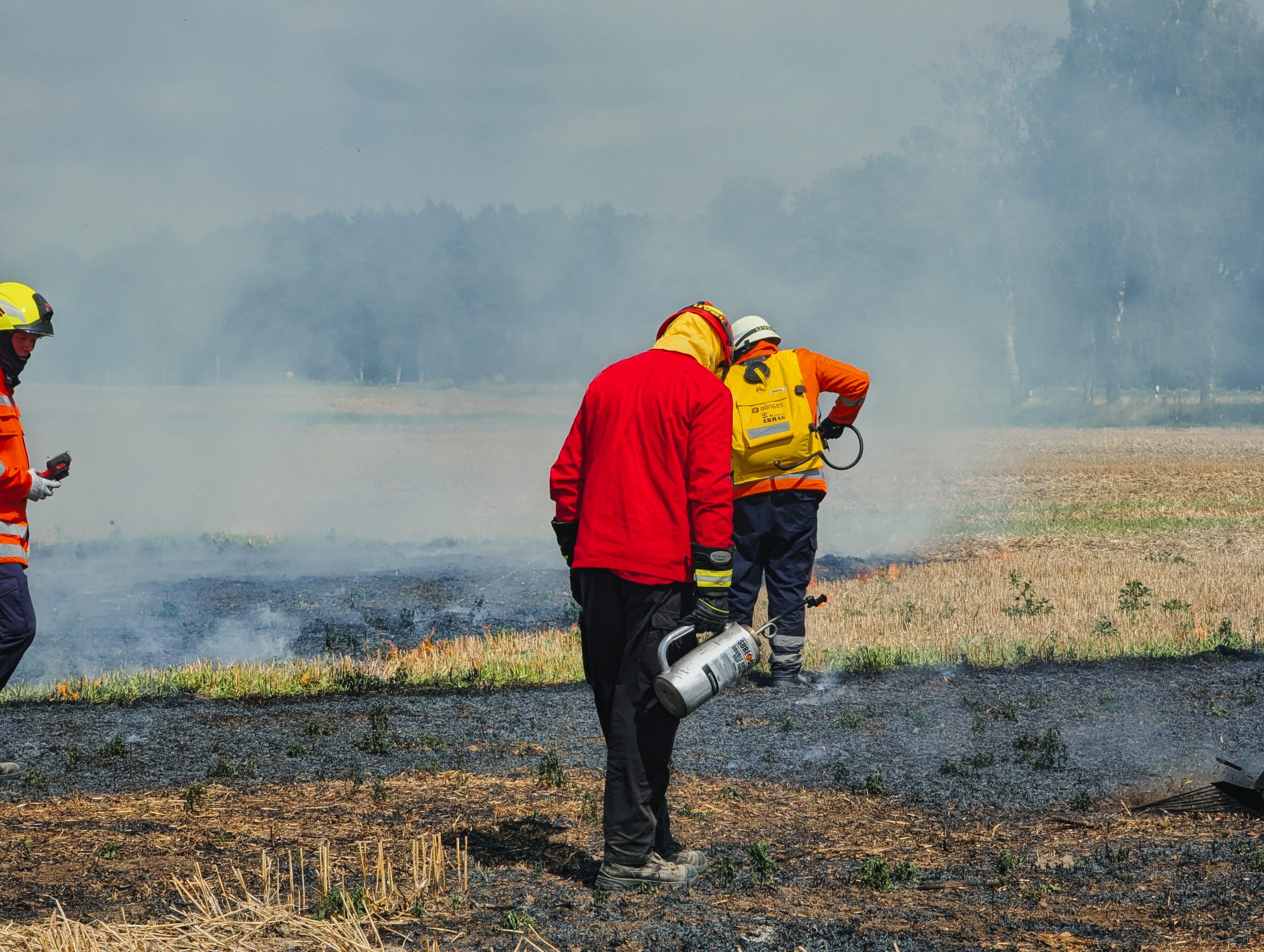 Im Verlauf des Nachmittags kamen dann auch die wasserführenden Fahrzeuge zum Einsatz. Dafür wurde eine größere Stoppelfeldfläche in Brand gesteckt und anschließend im Pump-and-Roll-Verfahren abgelöscht.